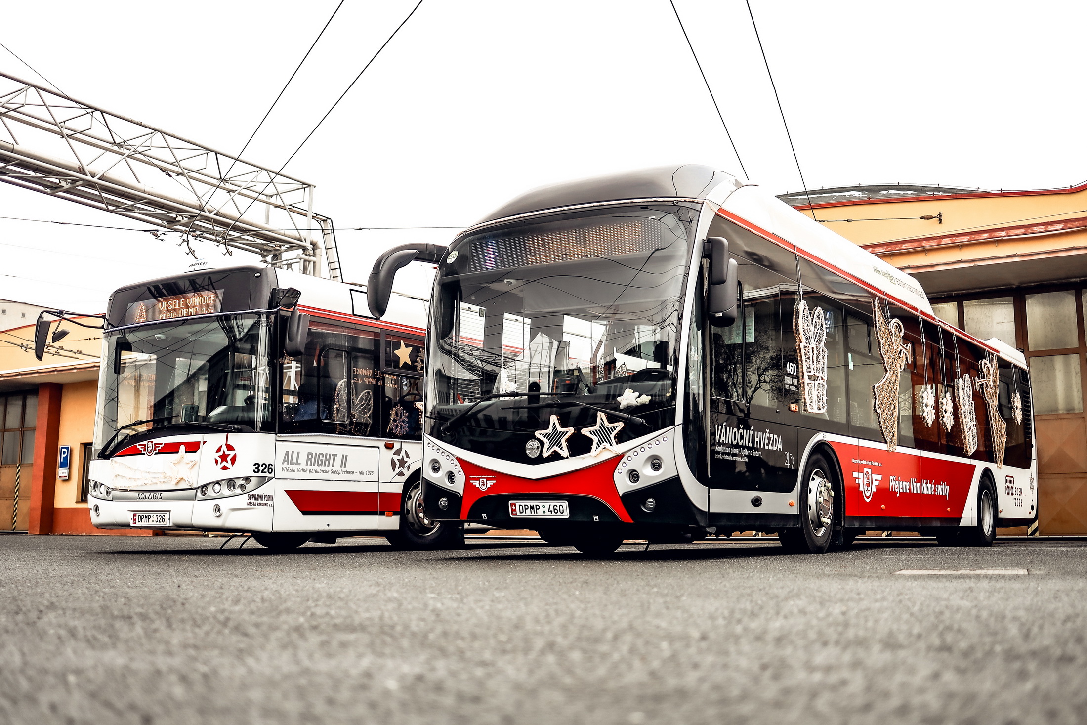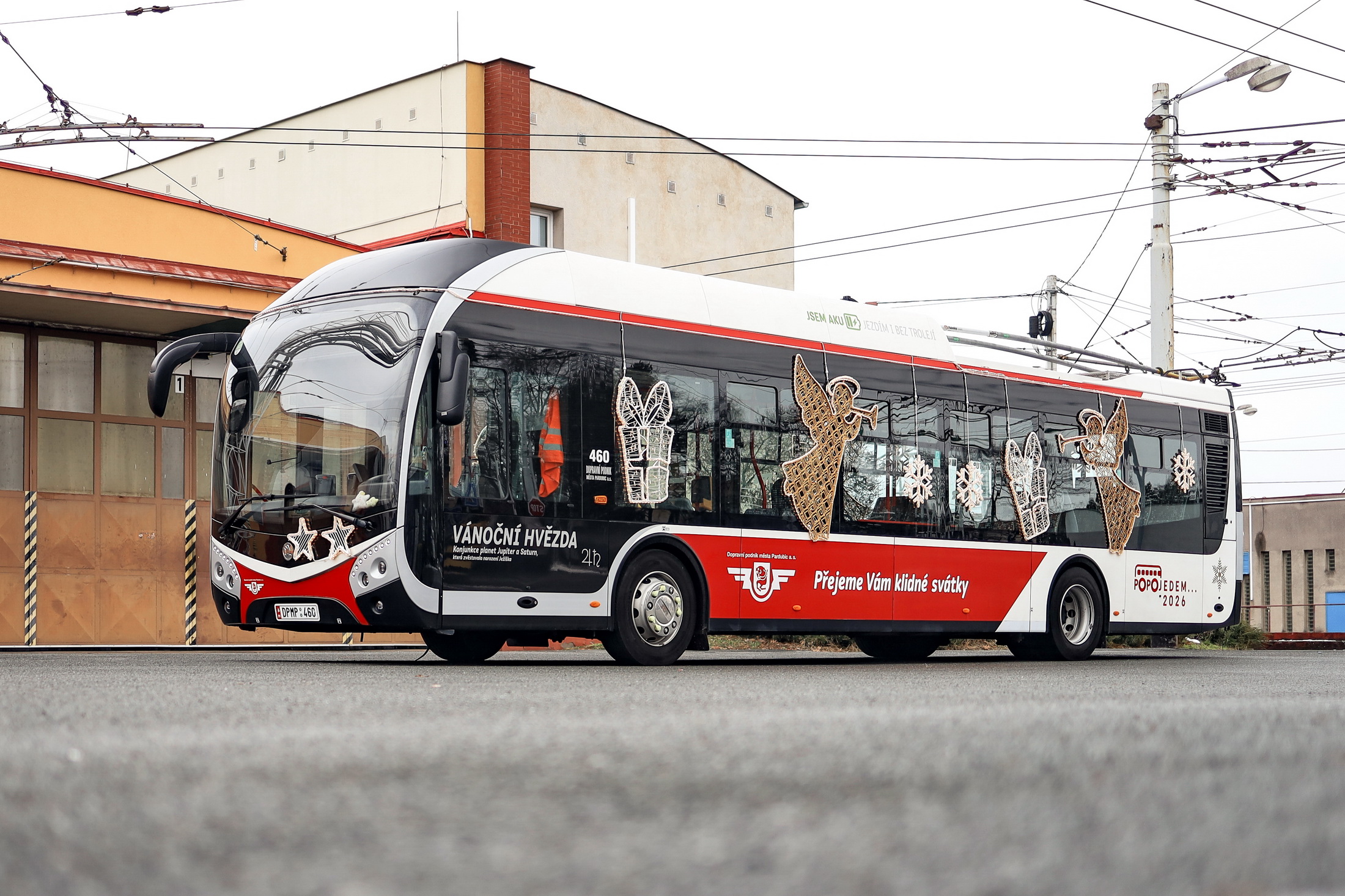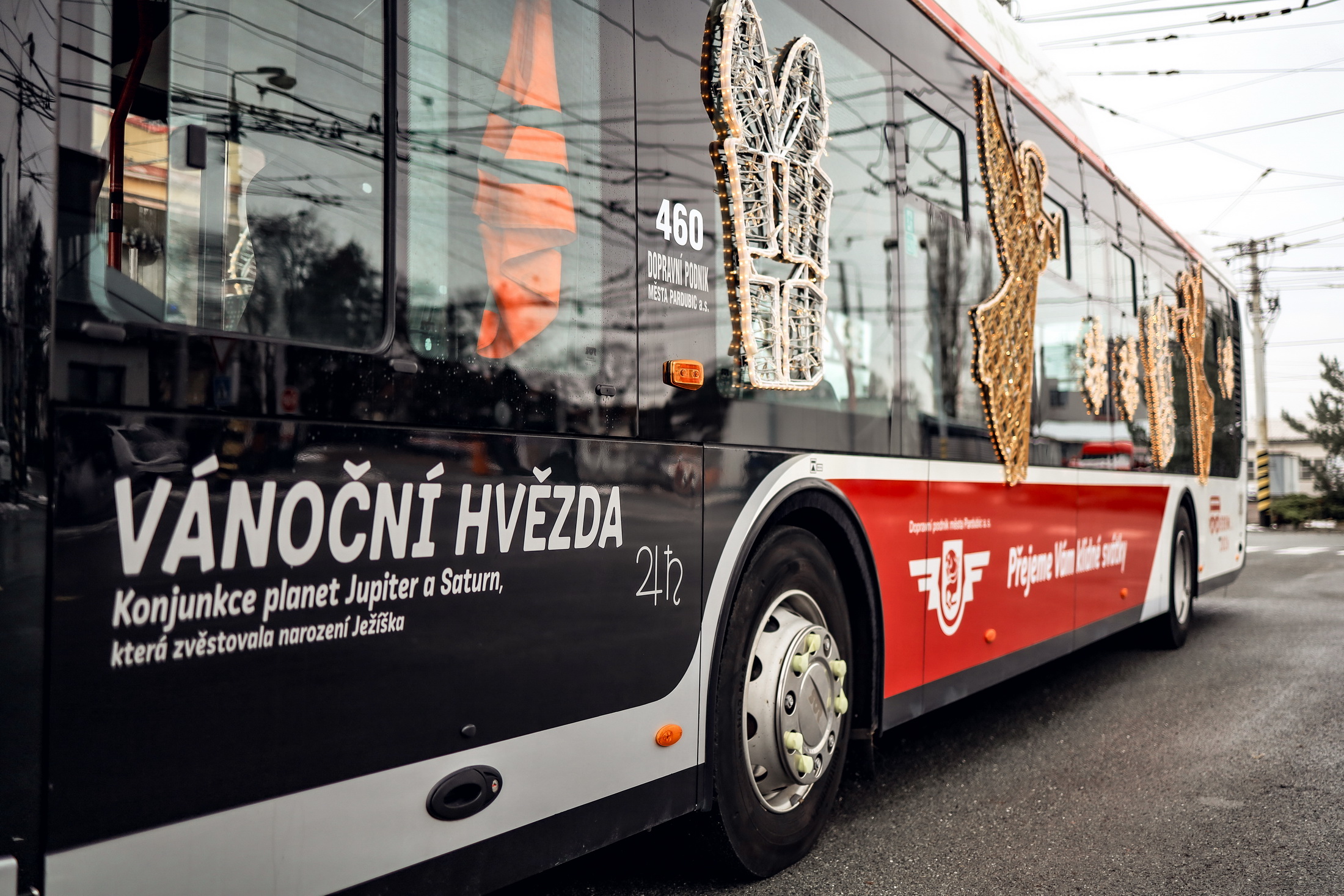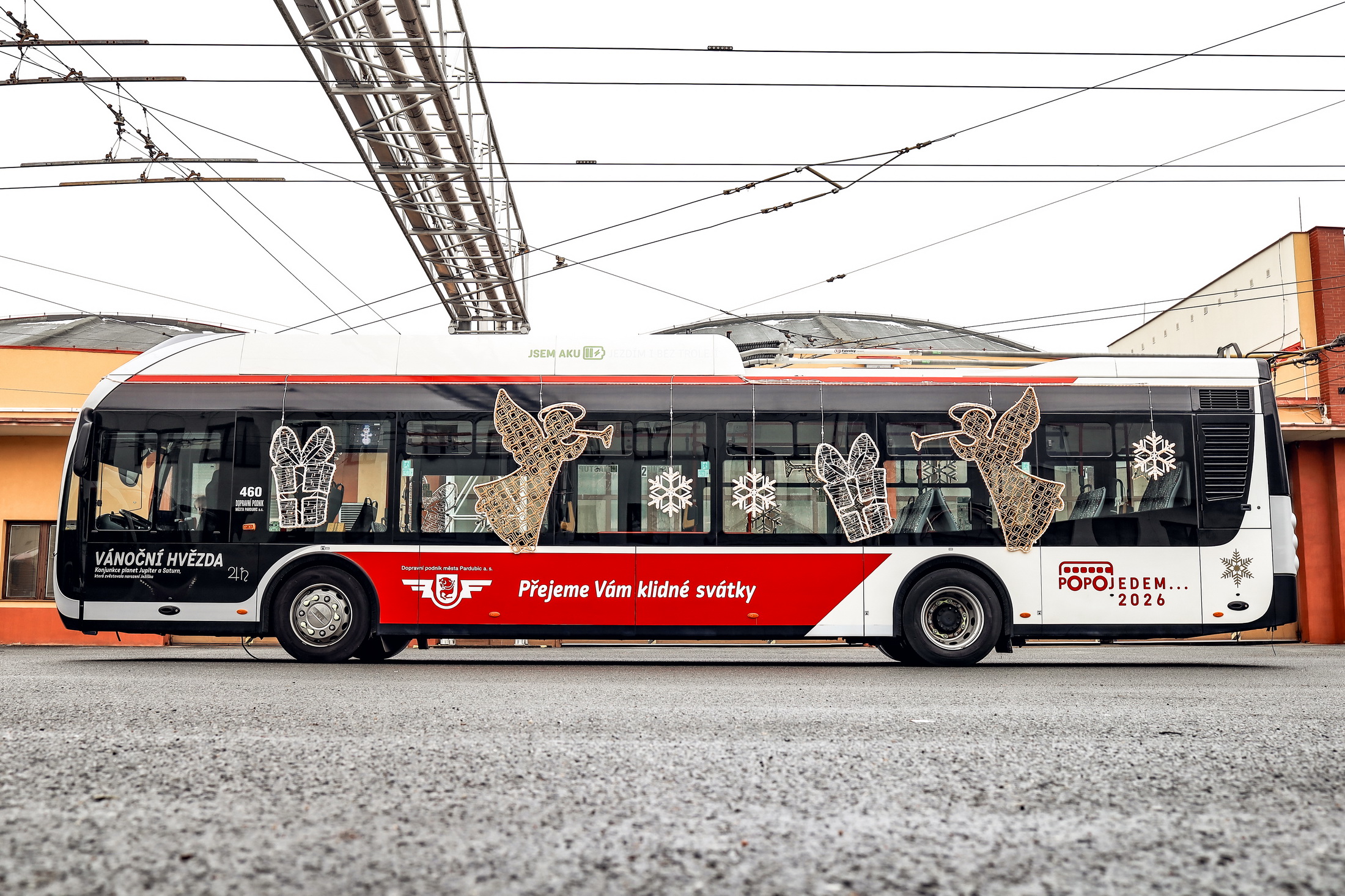 Dva vyzdobené trolejbusy, které budou nasazovány na pravidelných linkách potkáte v pardubických ulicích od konce listopadu až do Tří králů.